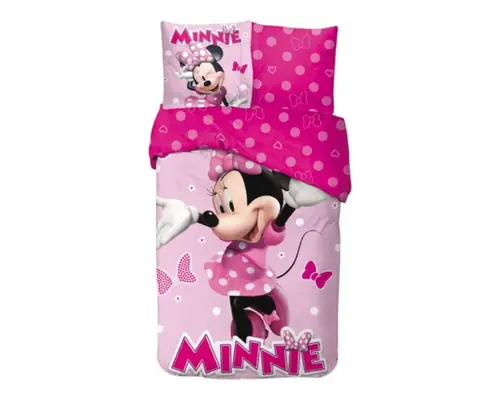 Disney Minnie Pink Polka Bow laste voodipesukomplekt, 140x200, 65x65cm
